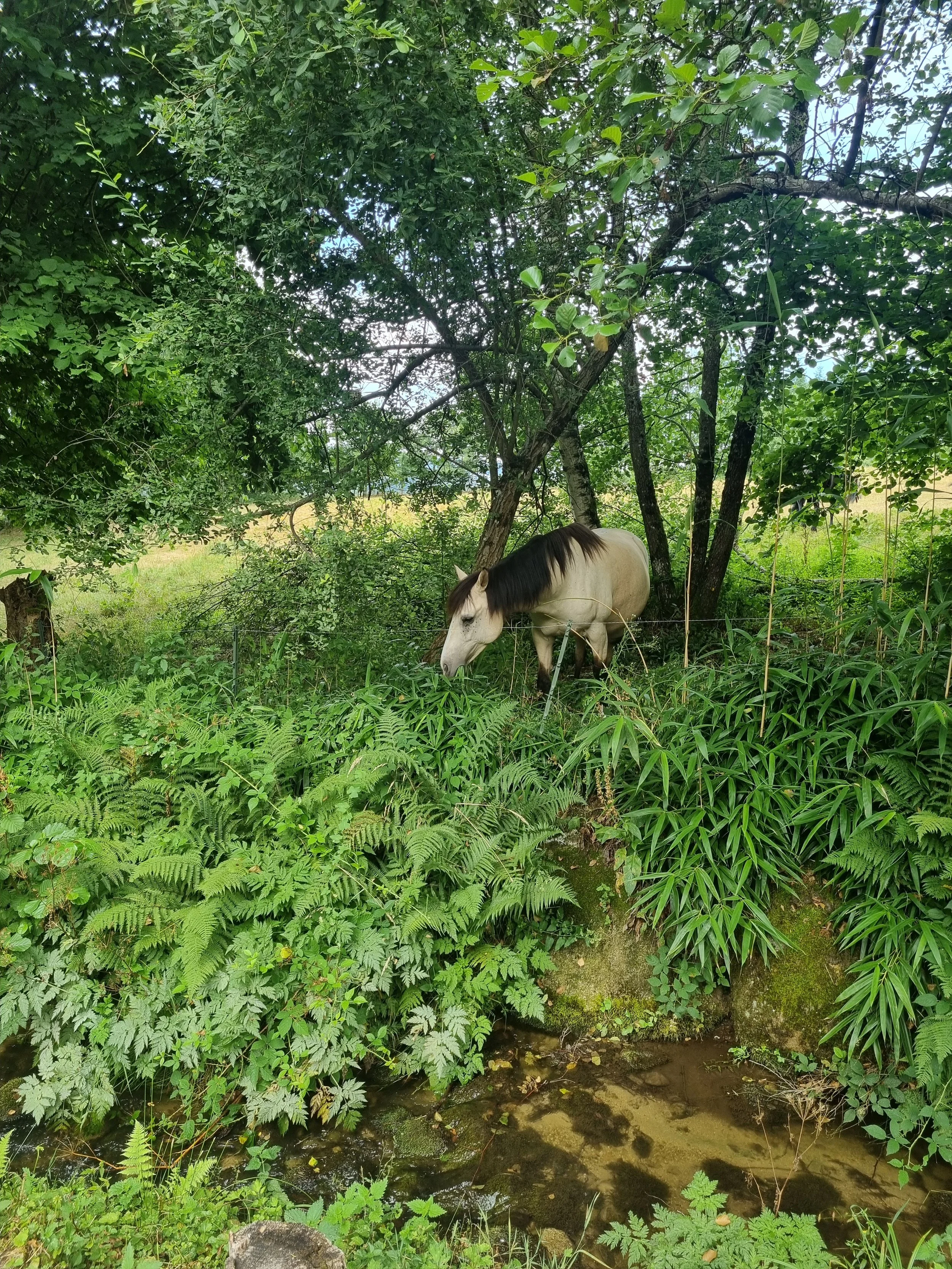 Nous avons cherché une maison avec des prés alentour et de l’eau courante, qui nous permettent de vivre avec nos chevaux et de répondre aux exigences essentielles de leur détention. Au plus près de la nature, nous nous efforçons de les soigner avec ce qui nous entoure sans nuire à leur environnement.